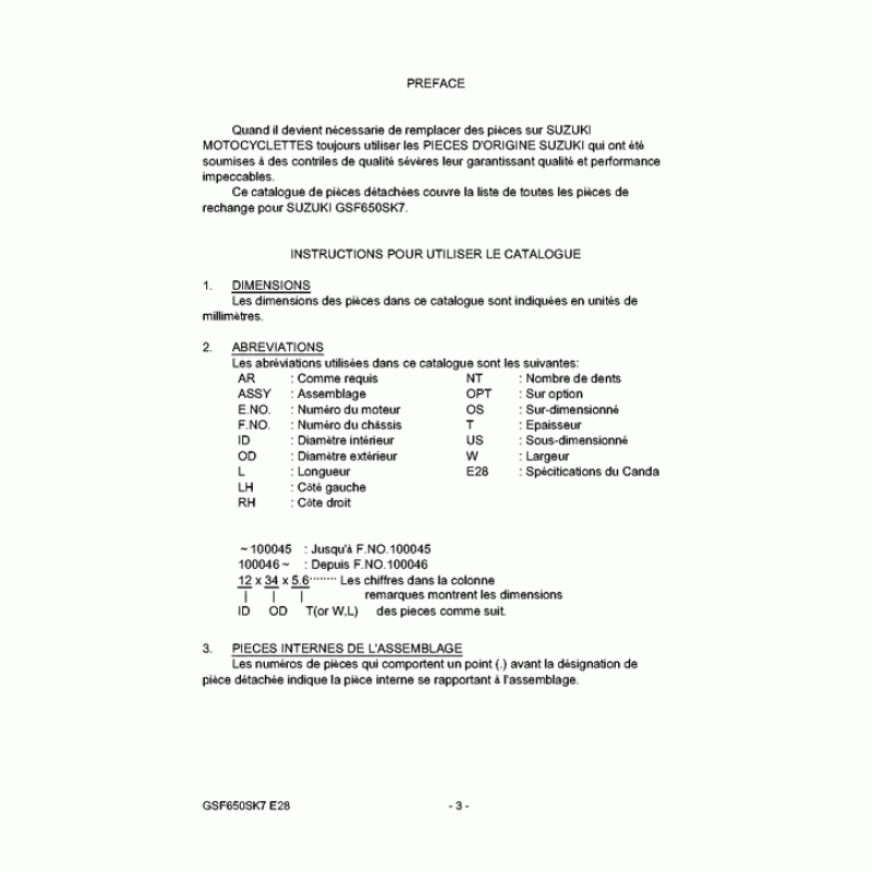 Деталізація вузла Довідкова інформація для Suzuki GSF650 Bandit S.