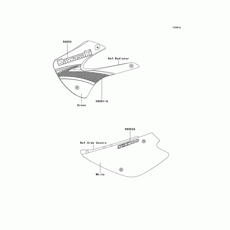 Деталізація вузла Наклейки (Green; d7f) для Kawasaki KX100.