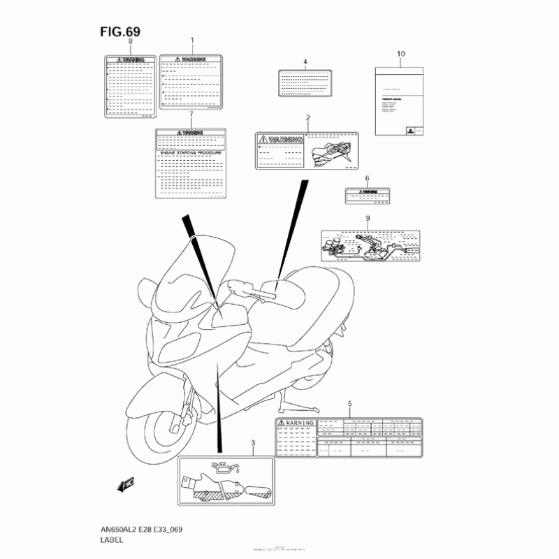 Деталізація вузла Інформаційні наклейки (An650A L2 E33) для Suzuki AN650 Burgman (European ana.