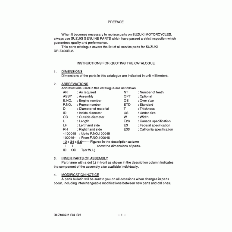 Деталізація вузла Довідкова інформація для Suzuki DR-Z400 DR-Z400S.