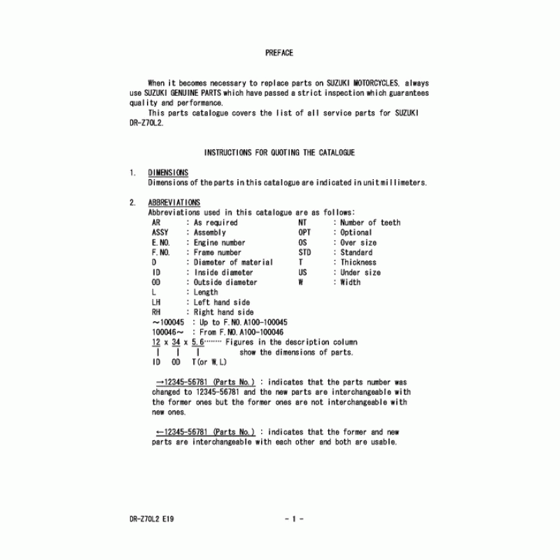Деталізація вузла Довідкова інформація для Suzuki DR-Z70.
