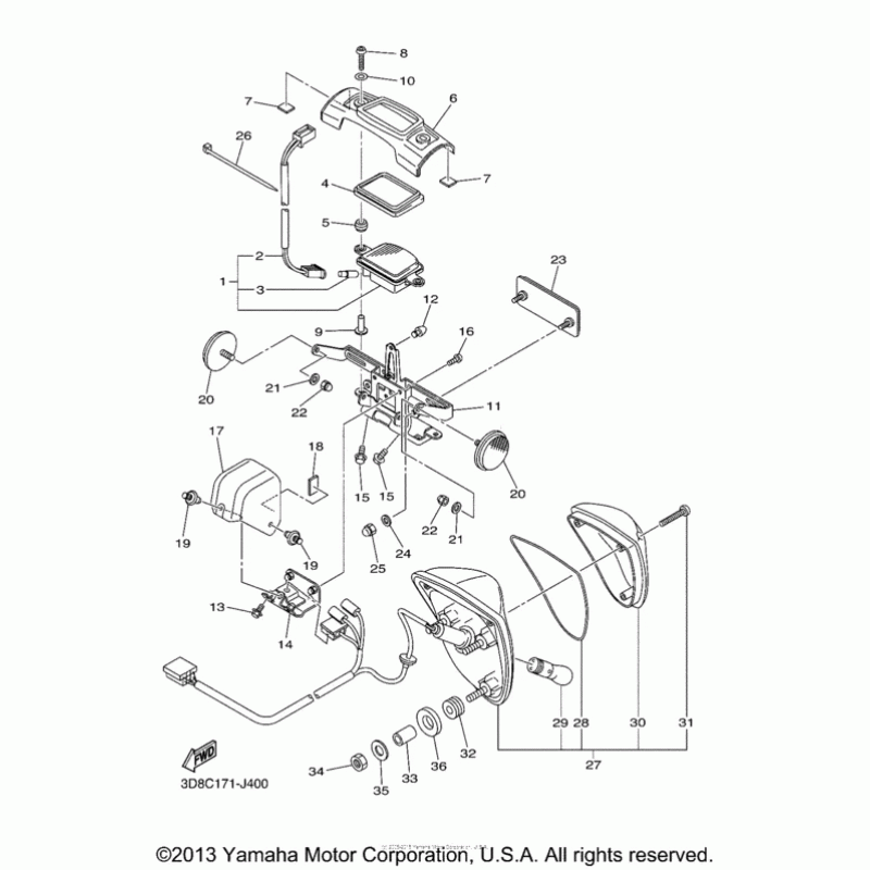 Деталізація вузла Задній ліхтар (Стоп-сигнал) Yamaha XVS1300 V-Star.