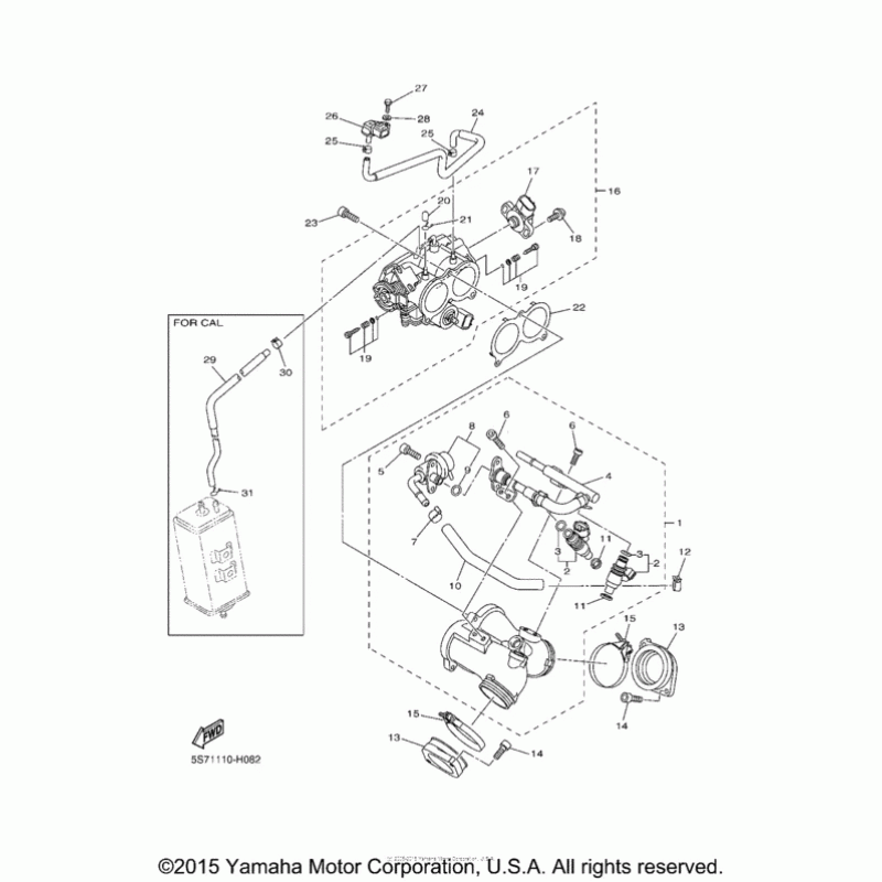 Схема вузла: Впускна система (1) Yamaha XVS950 V-Star Tourer