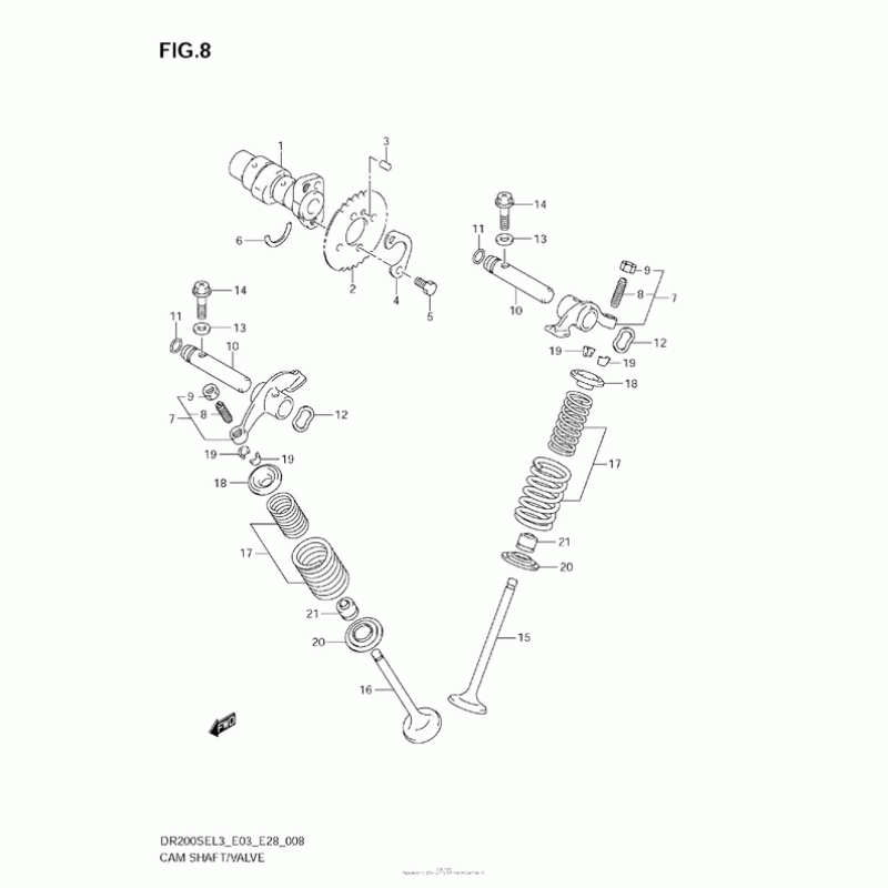 Деталізація вузла Розподільний вал & Клапан для Suzuki DR200 DR200SE.