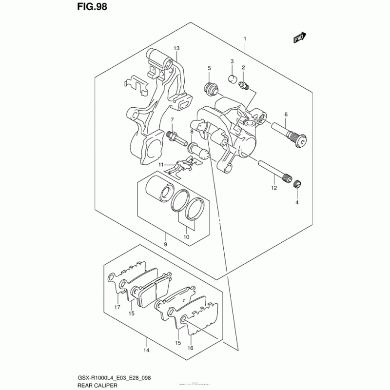 Схема вузла: Задній гальмівний супорт для Suzuki GSX-R1000