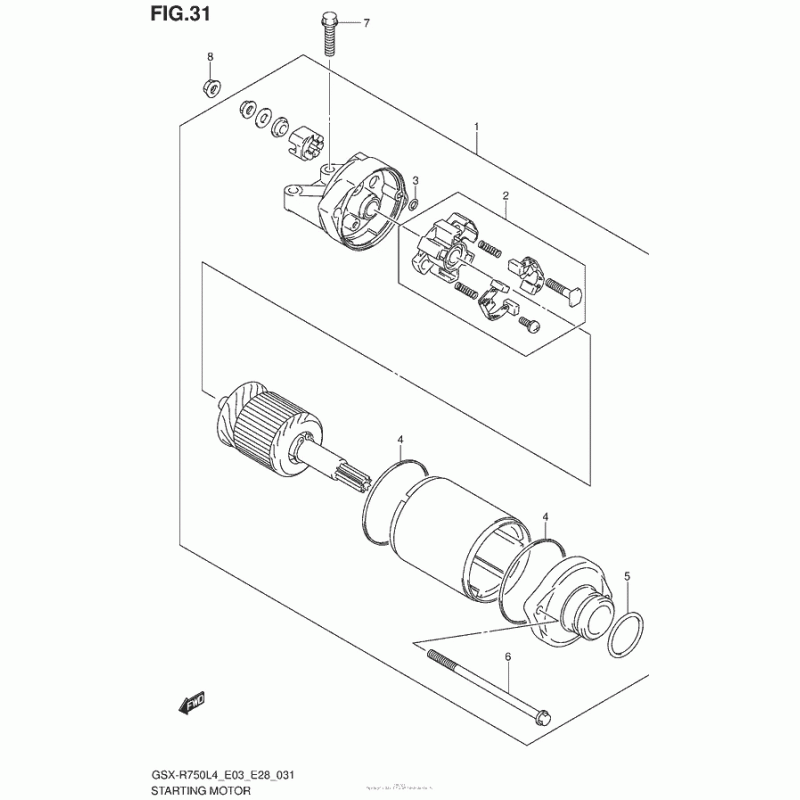 Деталізація вузла Електричний стартер для Suzuki GSX-R750.