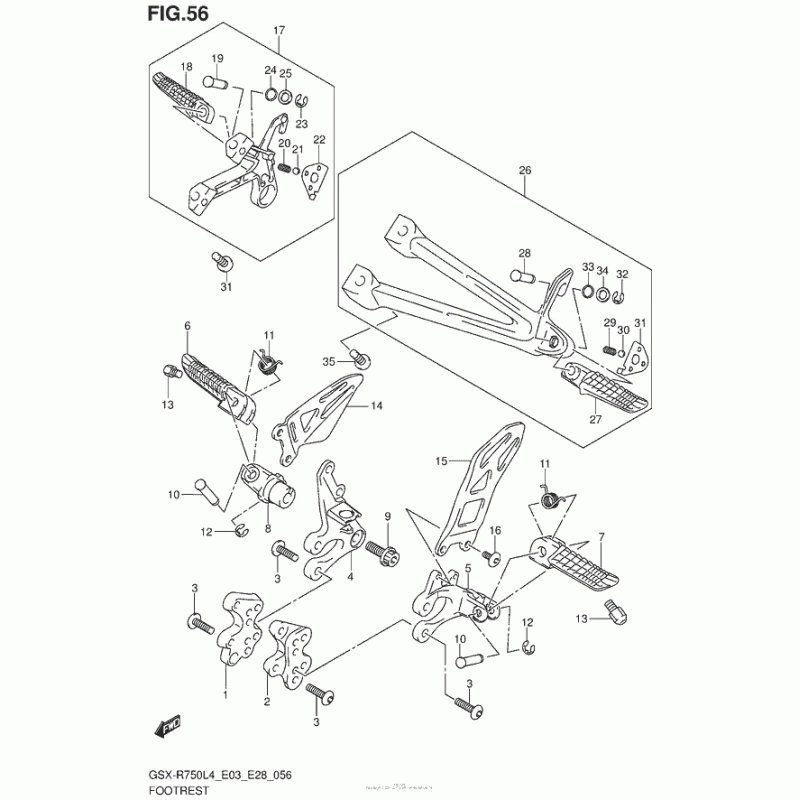 Схема вузла: Підніжки для Suzuki GSX-R750