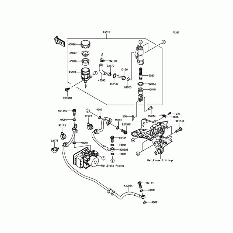 Схема вузла: Задній гальмівний циліндр Kawasaki ZR800 Z800 ABS