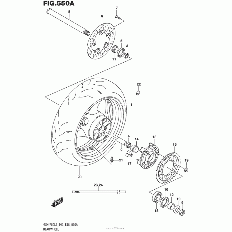 Схема вузла: Заднє колесо Suzuki GSX-R750