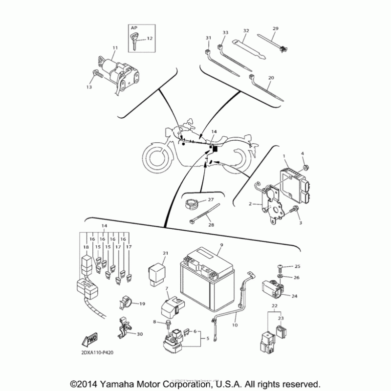 Деталізація вузла Електроустаткування (2) Yamaha XVS950 Bolt.