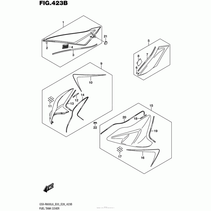 Деталізація вузла Накладка паливного бака (Arb) для Suzuki GSX-R600.