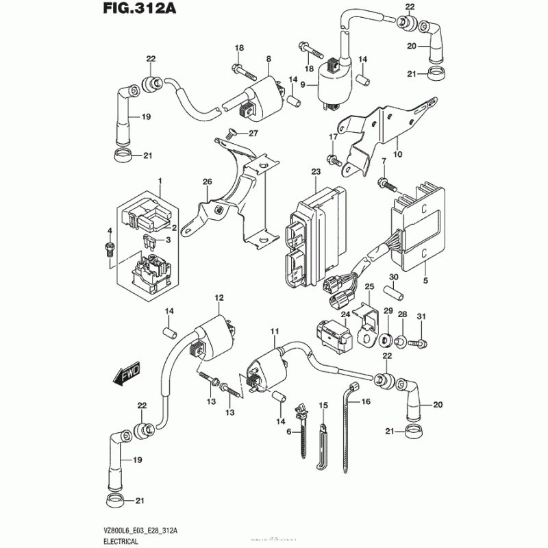 Деталізація вузла Електроустаткування (Vz800L6 E03) для Suzuki VZ800 Boulevard M50.