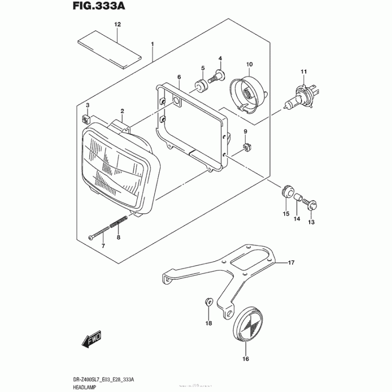 Деталізація вузла Фара для Suzuki DR-Z400 DR-Z400S.