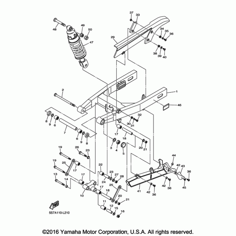 Схема вузла: Задній важіль та підвіска Yamaha XVS950 V-Star Tourer