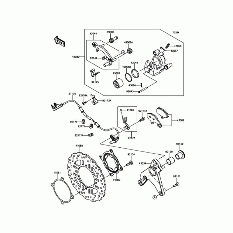 Схема вузла: Заднє гальмо для Kawasaki ZR1000 Z1000 ABS