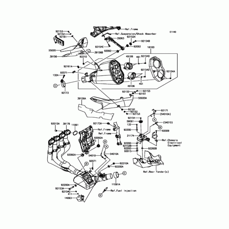 Деталізація вузла Вихлопна система для Kawasaki ZX1000 Ninja H2.